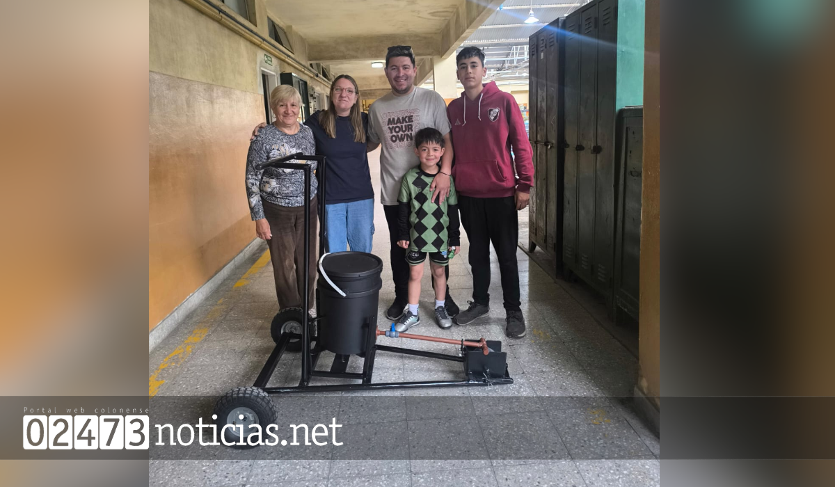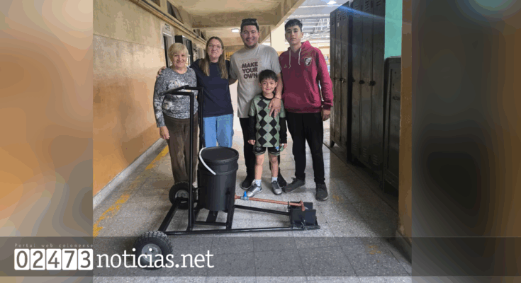 Todo comenzó cuando un grupo de estudiantes, que además integran el Club 9 de Julio, planteó la necesidad de contar con una máquina para marcar las líneas de la cancha. A partir de esa idea, y con el acompañamiento del profesor Juan Florensa y el apoyo de los directivos de la institución, los alumnos diseñaron y construyeron el dispositivo en el taller de la escuela.