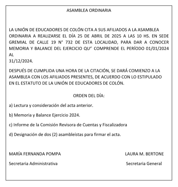 CONVOCATORIA A ASAMBLEA ORDINARIA DE LA FEB 27 de febrero de 202527 de febrero de 2025 - por 02473 noticias 215 ShareShareShare Visitas 215