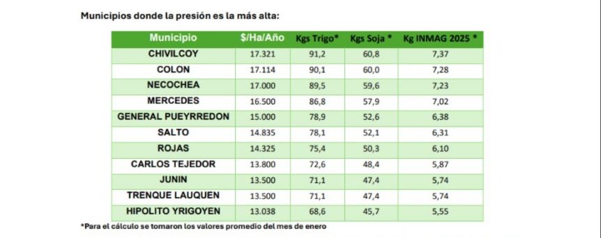 La Confederación de Asociaciones Rurales de Buenos Aires y La Pampa (Carbap) cuestionó duramente a varios municipios bonaerenses, incluyendo Colón, por el significativo aumento de la presión fiscal sobre el sector agropecuario en los últimos años. Según la entidad, el impacto de estas cargas impositivas afecta gravemente la capacidad productiva del sector.
